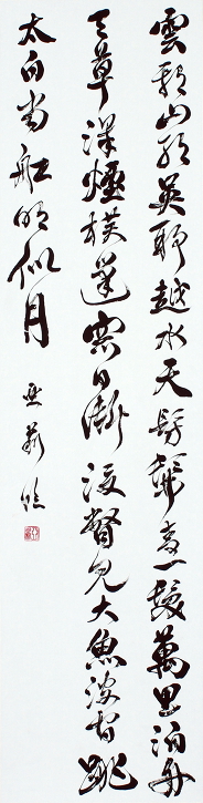 「広島市教育委員会賞」となった、藤原千穂さんの「癸丑歳偶作」は練り効いた線質と、「天」の書き出しから最後の「史」までの充実した気力・運筆が見事です。奇を衒わない造形、あざとさのない誠実な創意と工夫には詩意に呼応した姿も髣髴させ好感が持てます。落款は擱筆時の心境を想像して吟味・工夫してください。