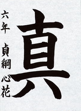 小学校部門は、昨年度と同様の課題「真」又は「忠孝」でした。入賞した作品は、筆の勢いを感じられる力強い作品でした。筆圧を加減しながら書かれたメリハリある文字も多く見られ、子供たちのレベルの高さを感じました。