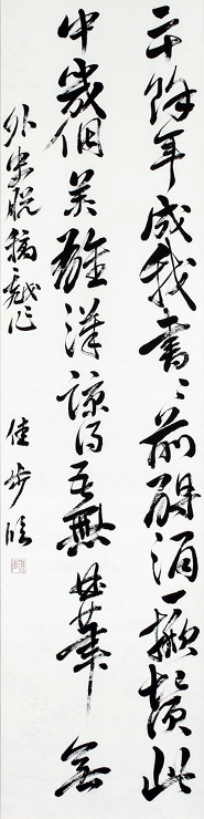 この度は、奨励賞を頂きありがとうございました。頼山陽書道展に出品し、浩然之氣という言葉の由来や頼山陽について知る機会を得る事ができました。浩然之氣の意味する「大らかな気持ち」を表現するため、「氣」の四画目をのびのびと書く様意識しました。苦心した所は、浩然之氣の「然」「氣」のバランスです。又、作品の印象を左右する落款に未熟さを感じています。この賞を励みにこれからも精進していきたいです。