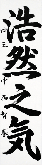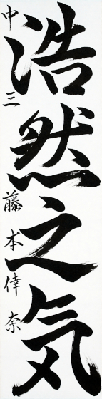 藤本 倖奈さんの「浩然之気」は大きな気宇、澄んだ心境、躍動感に溢れた力作です。特に抑揚豊かな運筆で、書き出しから名前まで貫通し、全体が一になって生動しており見事です。