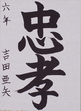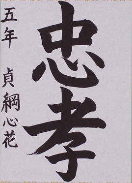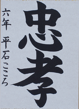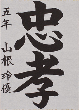 小学校部門は、「真」又は「忠孝」が課題でした。入賞した作品は、素直さが感じられる力強い線で表現している点が印象に残りました。